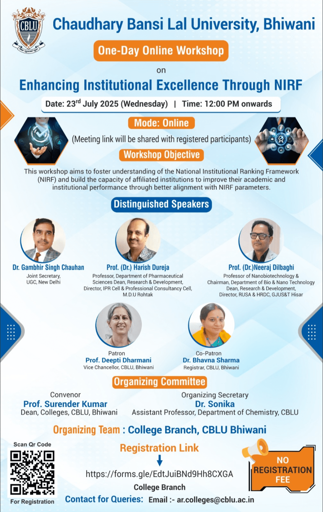 Invitation to One-Day Online Workshop on NIRF – 23rd July 2025