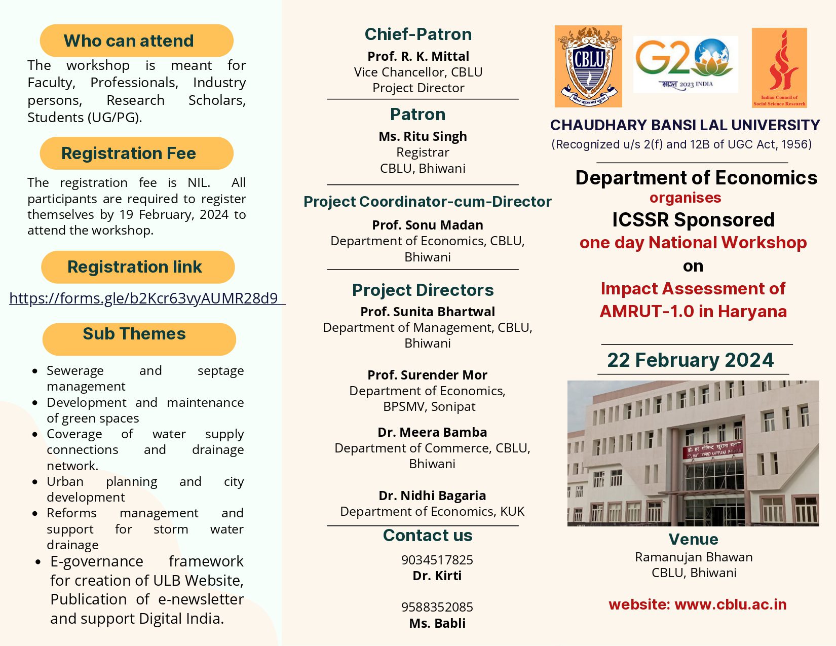 One Day National Workshop on “Impact Assessment of AMRUT-1.0 in Haryana on 22 February, 2024