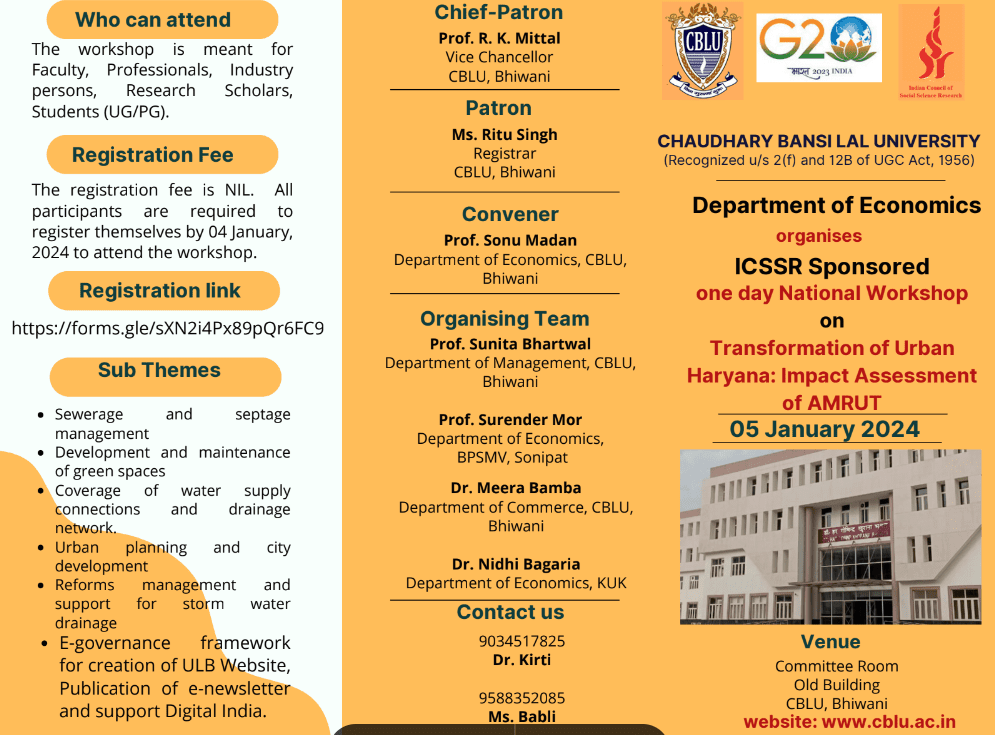 One Day National Workshop on Transformation of Urban Haryana: Impact Assessment of AMRUT on 16 January, 2024