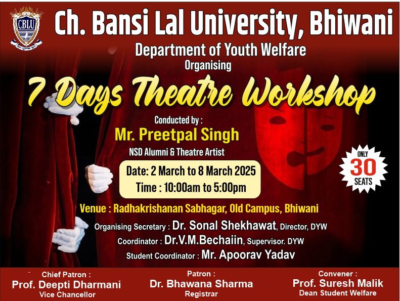 Theatre Workshop to be organised by Department of Youth Welfare from 02nd March to 8th March 2025