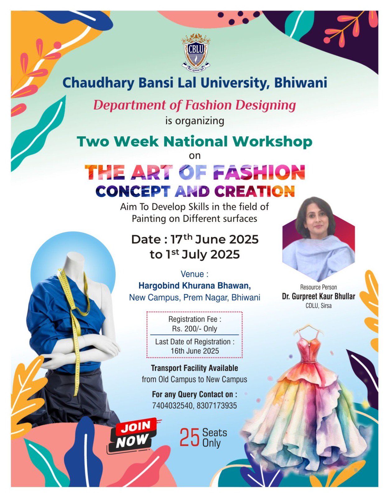 Two week National Workshop on “The Art of Fashion Concept and Creation” from 17th June to 1th July 2025